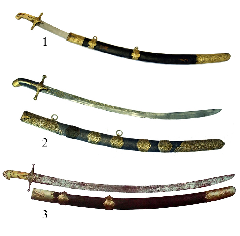 3 – Карабеля, ІІ половина XVII ст., т.зв. “шабля Богдана Хмельницького”. Нині зберігається в Переяслав-Хмельницькому державному історичному музеї. Містить напис на клинку “BOGDAN CHMIELNICKI” та віршовану присвяту