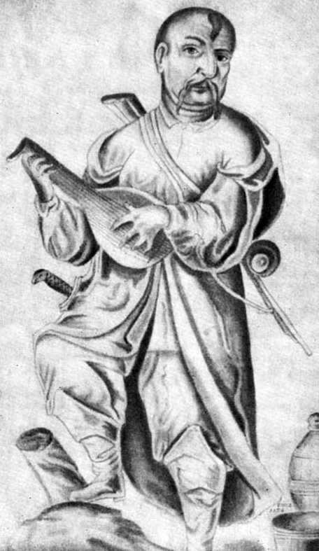 Іл. 6. Малюнок з лаврського “кужбушку”, що зображує козака-бандуриста, на боці якого – “шабля орла”