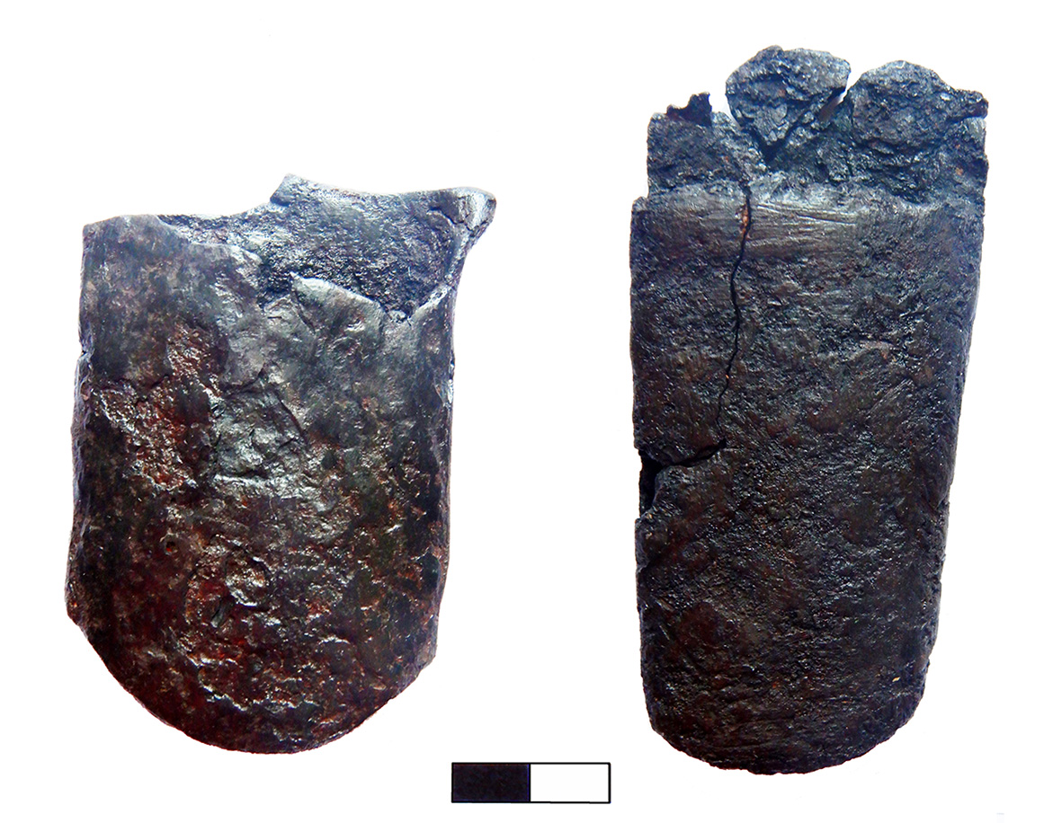 Іл. 8. Залізні наконечники піхов ХVIІ–ХVІII ст. з досліджень на території церкви Спаса на Берестові у 2018–2019 рр. (розкопки С. Тараненка та В. Івакіна):