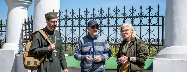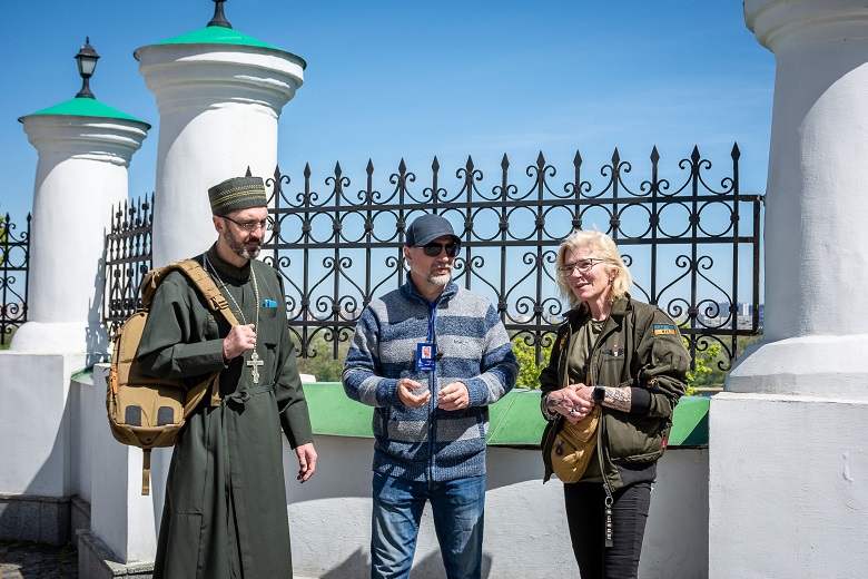До Національного заповідника «Києво-Печерська лавра» завітали Юлія Паєвська («Тайра») – українська військовослужбовиця, парамедикиня та волонтерка, командирка підрозділу «Янголи Тайри» та військові капелани, які зараз несуть службу в ЗСУ – Андрій Гуль, Михаїл Предко та Ігор Авраменко. Спільно із Максимом Остапенком, в.о. гендиректора Національного заповідника, гості обговорили формат майбутньої співпраці між священниками, волонтерською спільнотою, військовими та заповідником.