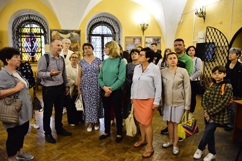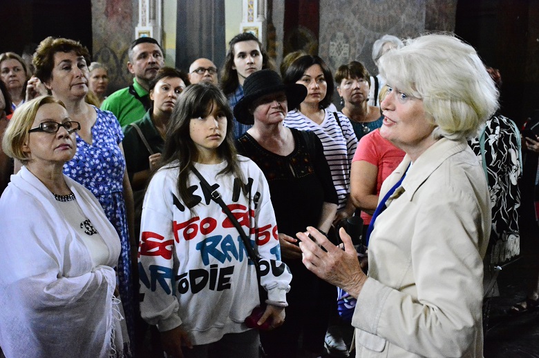 Приємним продовженням лекторію у Лаврі стала закрита екскурсія до Всіхсвятської церкви у супроводі екскурсовода Наталії Бондаренко Лавра Печерська. Церква була збудована коштом гетьмана Івана Мазепи протягом 1696−1698 рр. Нині там збереглися зразки храмового живопису початку XX ст. Герб гетьмана прикрашає її північний фасад, а сама церква вважається одним із найяскравіших взірців українського "мазепинського" бароко.