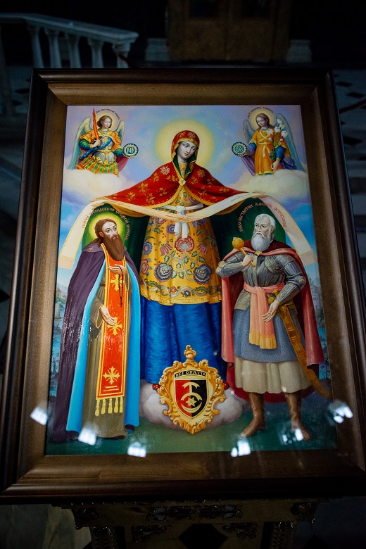 Ікона “Покрова Пресвятої Богородиці з преподобним Феодосієм Печерським та князем Костянтином Острозьким” передана 30-й окремій механізованій бригаді імені князя Костянтина Острозького. Центральний образ ікони - Богородиця, яка простягає свій покров над святими покровителями та воїнами. Герб бригади зображений у нижній частині композиції, нагадуючи про спадковість традицій.