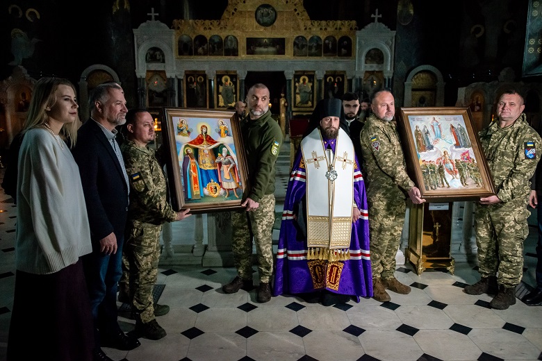 Ікона “Покров Богородиці з Києво-Печерськими святими та Архістратигом Михаїлом” передана 25-й окремій повітрянодесантній бригаді. На ній Богородиця, оточена Печерськими отцями, простягає свій покров, а в нижній частині ікони зображений Архістратиг Михаїл, який веде військо небесне, підтримуючи українських воїнів.