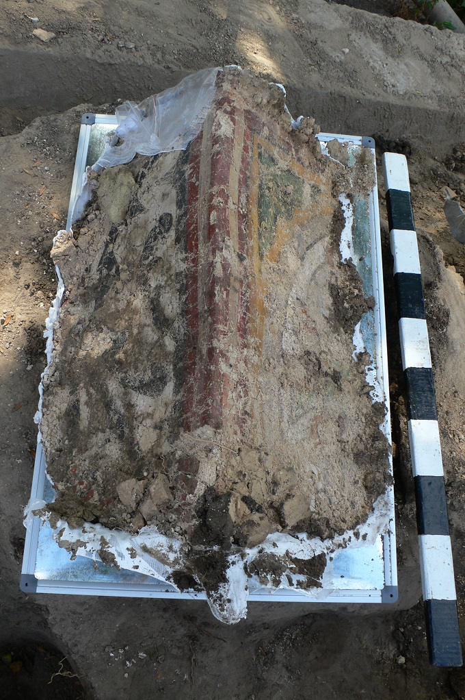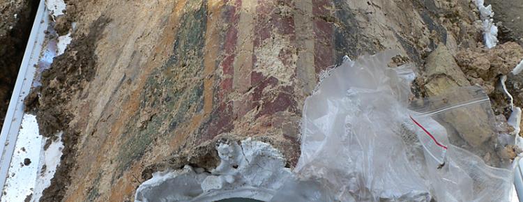 Стратегия и методика извлечения большого фрагмента фрески сложной формы была разработана после проведения реставраторами и археологами ряда консультаций. Фреска была изъята из раскопа с минимально возможными потерями благодаря применению археологами методики извлечения находки монолитом.