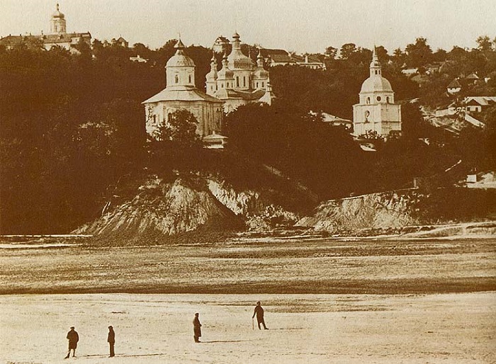 3. Видубицький монастир. Вигляд із-за Дніпра: а) кінець ХІХ ст.; б) початок ХХ ст.