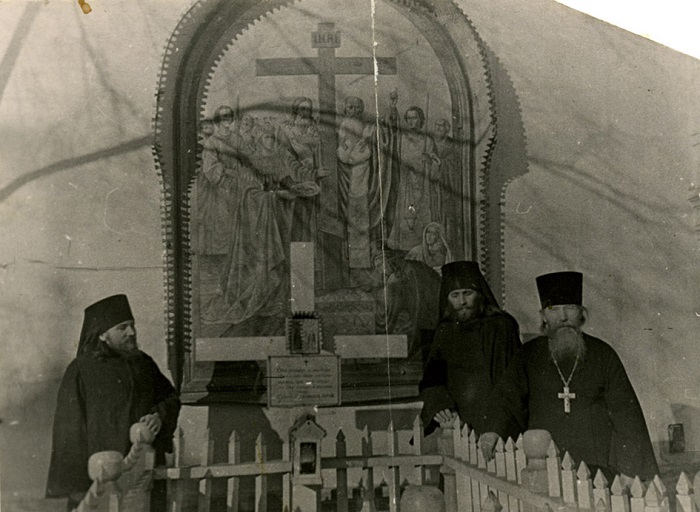 04-05. Братія біля могили владики Антонія (лицевий та зворотний боки)