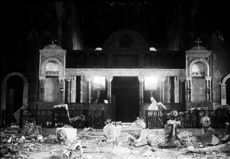 01. Інтер’єр церкви Прпп. Антонія і Феодосія Печерських (Трапезної) із розстріляними і розбитими скульптурами