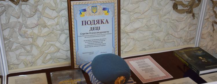 В експозиції представлено понад 300 робіт. Це – картини Павла Кулика, Василя Піддубного, Яни Сєдової, Юлії Євдокимової, Вадима Лемешка, Руслана Кашаюка, Світлани Андрійчук; вишиті бісером та хрестиком картини і ікони Олександра Надорожняка, Ігоря Лугіна та Тетяни Дрьомової; різьблення по дереву Сергія Великохатнього; вироби зі шкіри і дерева Павла Балабухи та Андрія Музиченка; мило ручної роботи Олексія Грищенка; ляльки-реборни Сергія Бондаря; художньо розписані фрагменти ящиків для боєприпасів й гільзи Світлани Логуш-Луців та волонтерки Мар’яни Доріченко; воєнні світлини та портрети українських героїв Леоніда Шрайбікуса, Віталія Коруна та Віталія Запеки; дизайнерський розпис одягу Лесі Борсук; сувенірна продукція Світлани Анісімової та Світлани Ребрикової. Варті уваги друковані та рукописні твори понад 15-и авторів: Віктора Залевського, Олени Макарчук, Тамари Горіха Зерня, Патріка Адамса, Сергія Сайгона, Юрія Руденка, Олександра Бурбела, Олексія Петрова, Василя Піддубного, Олега Федотова, Сергія Дека, Германа Дубініна тощо.