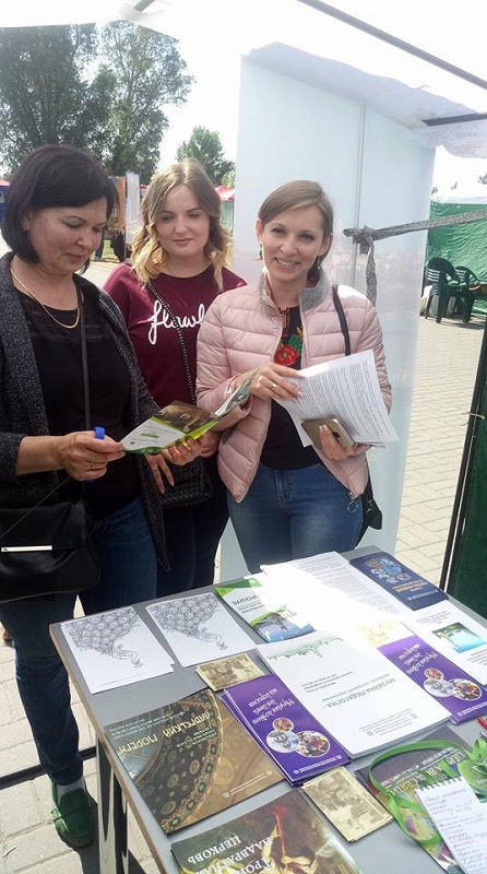 Особливий інтерес у колег викликав буклет «Музейне дозвілля для дітей та дорослих», де розміщено інформацію про цікаві, інтерактивні, тематичні екскурсії, театралізовані заходи. Популярністю серед дітей та дорослих, потенційних відвідувачів музеїв, а також музейних працівників користувалася розмальовка «Павич» з інформативною довідкою на звороті про наш заклад. Увагу присутніх на заході наукових співробітників музеїв України привернула представлена інформативно-довідкова література, збірники науково-практичних конференцій, зокрема «Музейна педагогіка – проблеми, сьогодення, перспективи».