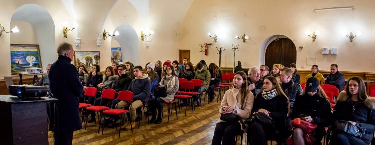 Семінар-відеопрезентацію проводив автор – художник та музикант Олег Слєпцов – заслужений архітектор України, доктор архітектури, професор, лауреат Державної премії України в галузі архітектури.