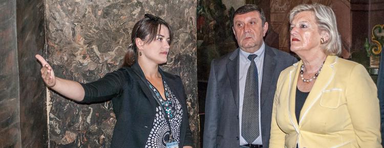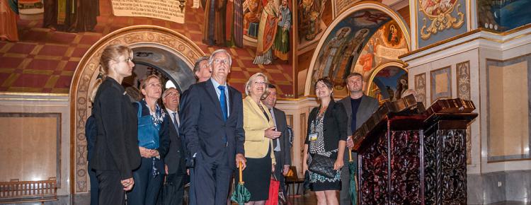 Для поважних гостей було проведено екскурсію по Заповіднику. Члени делегації відвідали Троїцьку надбрамну церкву, Успенський собор, Трапезну церкву з палатою, оглядовий майданчик та Ближні печери.