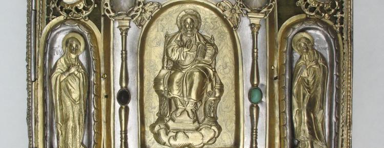 Для виготовлення оправи застосовані різні ювелірні техніки: накутники з образами євангелістів і фігури на чільній дошці, що виконані у техніці литва, накладка на звороті – карбована, а металеві застібки, декор та написи – гравійовані.