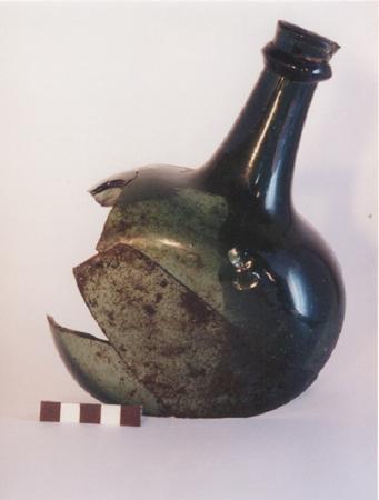 1. Пляшка XVІII ст. гутного скла темно-зеленого кольору.