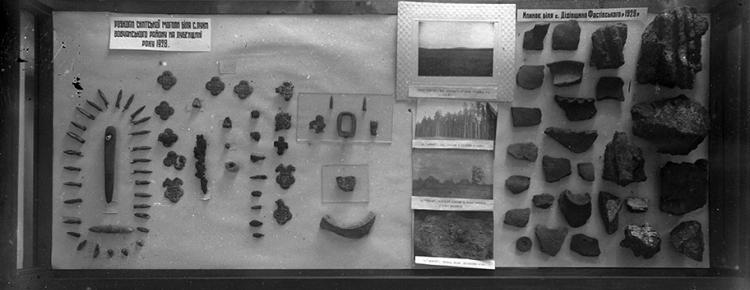 3. Вітрина з матеріалами з розкопок Сумського музею 1929 р. під керівництвом Миколи Макаренка неподалік с. Піщане (Сумська міськрада). «Виставка досягнень української археології за 10 років радянської влади». 1931 р. [КПЛ-Н-1442]