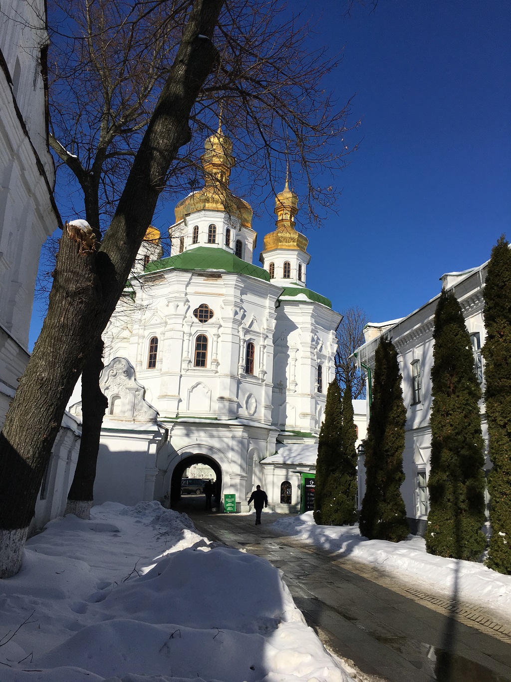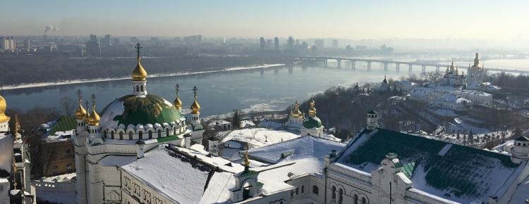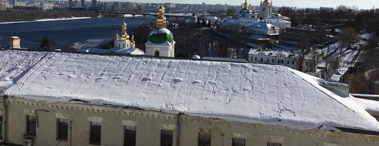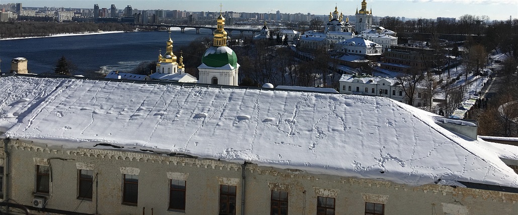 6. Сліди на снігу і панорама споруд Нижньої лаври. Фото М. Ткаченко, 2017 р.