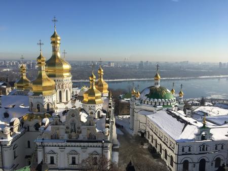 1. Успенський собор і Трапезна палата з церквою Прпп. Антонія і Феодосія. Погляд з Великої лаврської дзвіниці Фото М. Ткаченко, 2017 р.