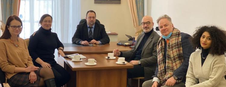 В рамках візиту гостей відбулася зустріч із заступником генерального директора Заповідника з наукової роботи Костянтином Крайнім та начальником відділу міжнародного співробітництва Катериною Єгоровою, під час якої були обговорені перспективи співпраці та спільних проектів, спрямованих на активізацію співробітництва між Заповідником, Посольством Італії та Фондом.
