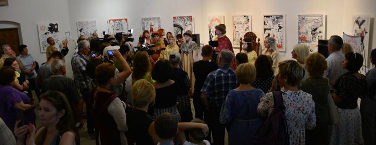 В експозиції представлені роботи у жанрі текстуально-візуального міксу історії та міфу, де зображено події в Україні ІХ–Х століть.