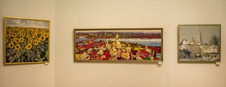 В експозиції представлені гобелени: «Лаврські аркбутани», «Нижній вхід до Києво-Печерської лаври», «Панорама з Лаврської дзвіниці», «Нічний Андріївський узвіз», «Ярославів вал» та ін.