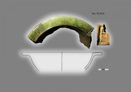 1. Фрагмент полив’яної миски з клеймом (шурф № 8).