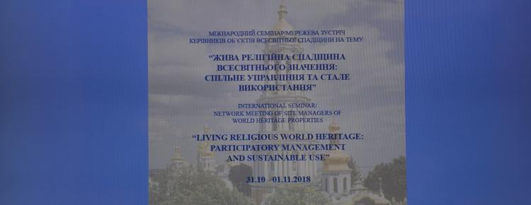 31 жовтня 2018 року у ДП «Генеральна дирекція з обслуговування іноземних представництв» відбулось урочисте відкриття міжнародного семінару/мережевої зустрічі керівників об’єктів всесвітньої спадщини «Жива релігійна спадщина всесвітнього значення: спільне управління та стале використання».