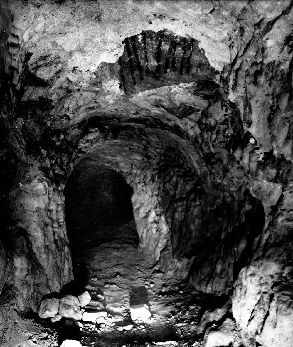 03. «Хід Меркурія» – одне з найдавніших печерних відгалужень. На зводі – залишки давніх розписів у вигляді вертикальних рисок
