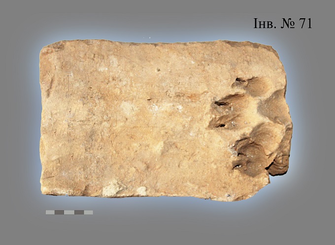 5. Фрагмент цегли-пальчатки з відбитком лапи тварини (собаки?).