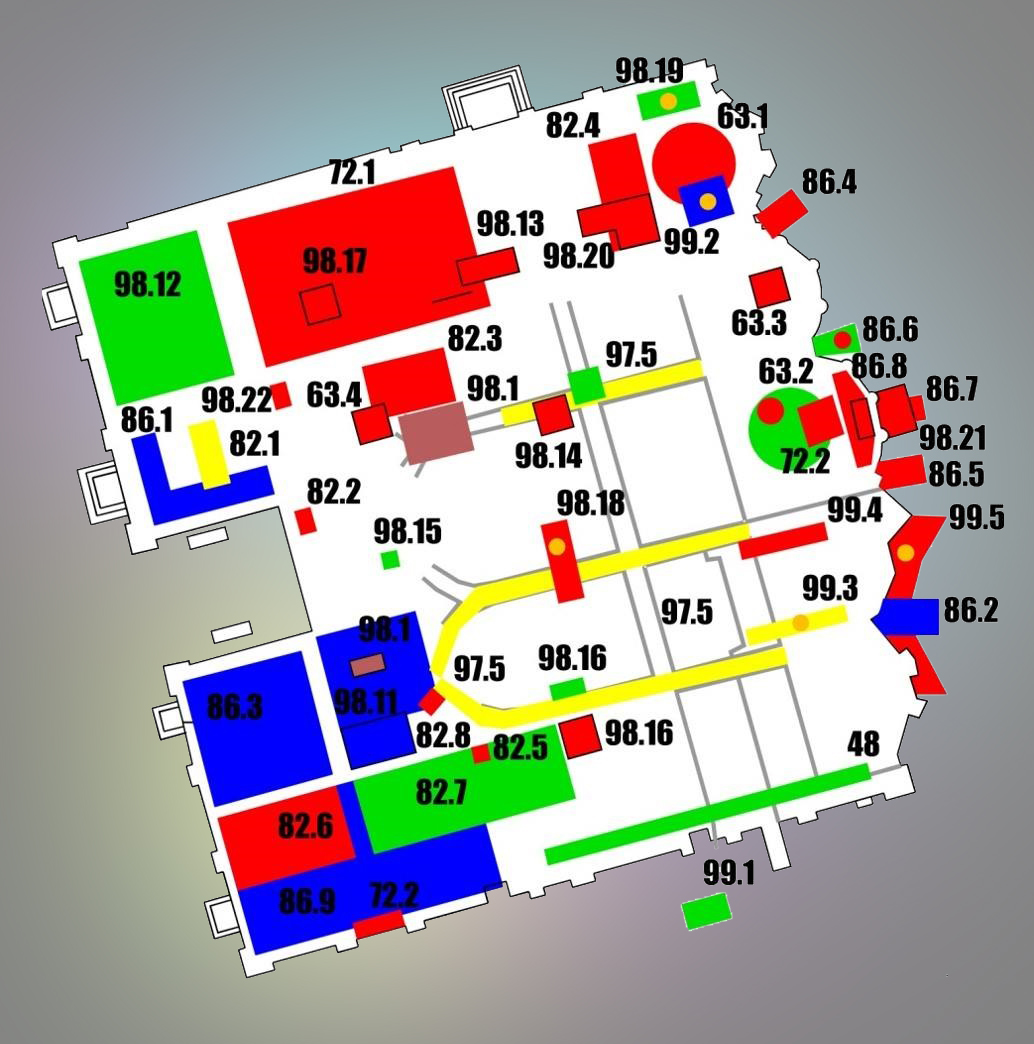 9. Фрагмент електронної Археологічної карти НКПІКЗ з зазначенням місць археологічних досліджень в площині Успенському собору.