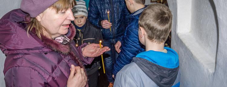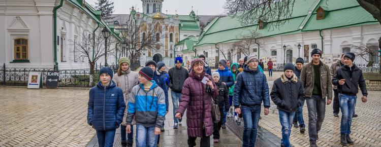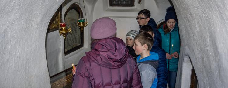 Подорож розпочалася з Оглядового майданчика, де гості стали учасниками короткого екскурсу в історію створення Ближніх і Дальніх печер Києво-Печерського монастиря. Далі учні відвідали Ближні печери – справжнє підземне «місто», де дорогу звично освітлює тендітна воскова свічка. Тут вдячні юні слухачі почули захоплюючу розповідь про життя, подвиги та особливості побуту видатних Печерських святих. Зокрема, про лікаря Агапіта, який врятував Володимира Мономаха, а також дізналися, про що можна попросити давньоруського богатиря Іллю Муромця.