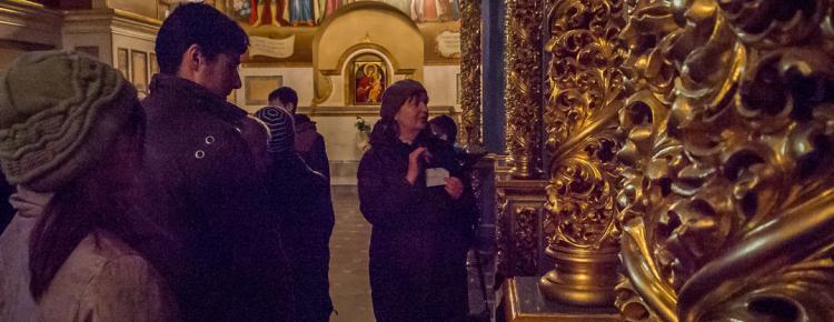 Друга частина екскурсії почалася зі знайомства з перлиною архітектурного ансамблю Києво-Печерської лаври – Успенським собором. Історія створення, руйнування та відтворення пам’ятки не залишили гостей Заповідника байдужими.