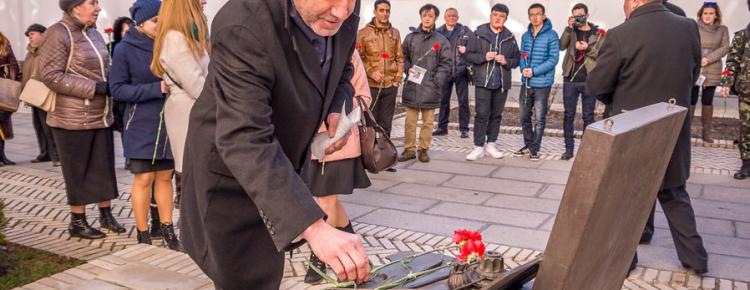 По завершенні заходу учасники поклали квіти до пам’ятного знаку Т.Г. Шевченку, який був встановлений до 200-літнього ювілею поета у 2014 році навпроти церкви Всіх Святих.