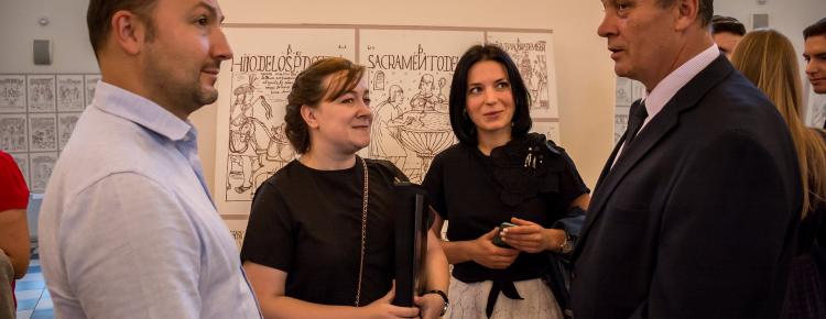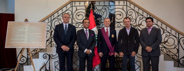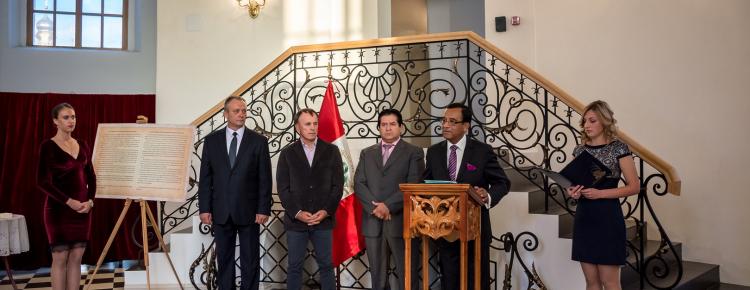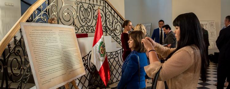 Надзвичайний та Повноважний Посол Республіки Перу в Україні пан Альберто Салас Бараона висловив вдячність присутнім гостям – представникам дипломатичного корпусу, українських Міністерств та освітніх установ, а також організаторам виставки за допомогу в реалізації важливого культурно-історичного проекту. Пан Посол відзначив важливість презентації експозиції саме у стінах унікальної Великої Лаврської дзвіниці та коротко ознайомив гостей з основною ідеєю культурно-історичного проекту, який має на меті популяризацію шедевру світової історіографії – перуанської хроніки історика Феліпе Гуаман Пома де Айала «Нова Хроніка та Добре Правління».