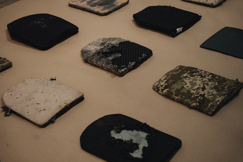 Основу експозиції становлять реальні артефакти війни — пошкоджені бронежилети та засоби захисту представлені як самодостатні об’єкти, що поєднують документальність і художнє переосмислення.