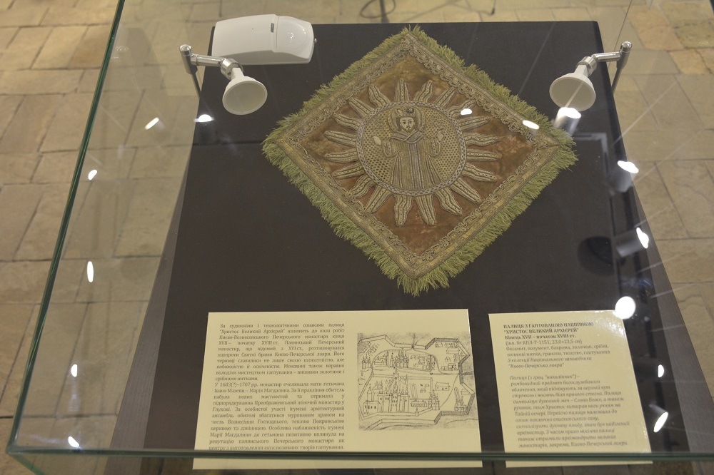 Знаковою родзинкою експозиції стала унікальна старовинна церковна вишивка золотими і срібними нитками кінця ХVII – початку ХVIII століть (палиця), витвір мистецтва гаптування роботи вознесенських черниць із колекції Національного заповідника “Києво-Печерська лавра”.