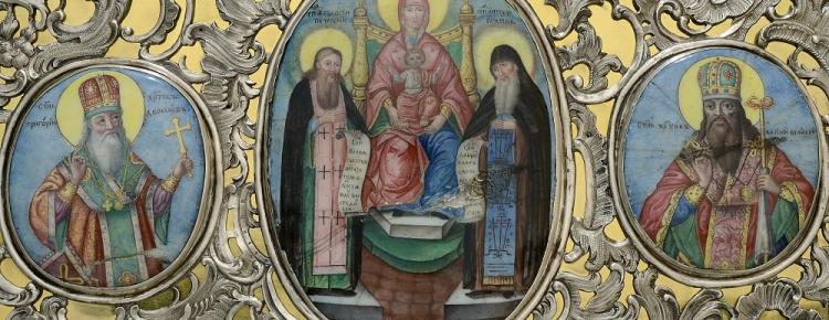 Мідну золочену з накладним срібним карбованим візерунком та фініфтевими медальйонами оправу виготовив у 1770-ті роки видатний майстер срібних справ Олексій Іщенко. Нещодавно її було відреставровано художником-реставратором Заповідника Віталієм Курловим.