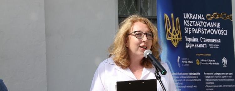 - інформаційні стенди, де відтворені атрибути Української держави від Середньовіччя до новітнього часу: печатки, міжнародні документи, гроші, прапори, герби, мапи.