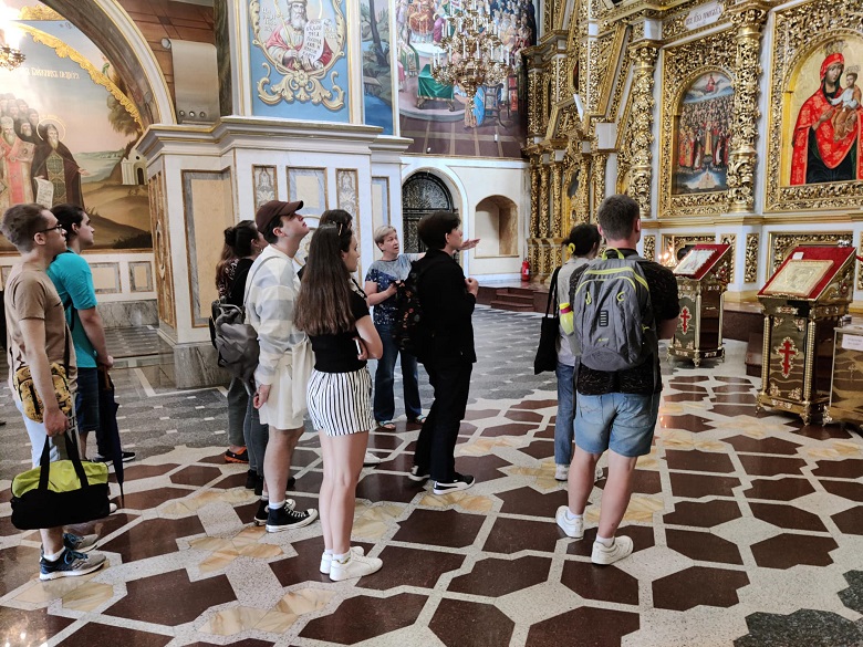 Юлія Місько провела оглядову екскурсію територією Заповідника. Науковці – Дмитро Пефтіць та Олена Махота ознайомили студентів із Археологічним хабом і історичними знахідками церкви Спаса на Берестові.