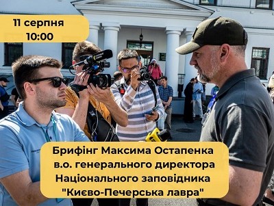 В п’ятницю, 11 серпня, о 10:00 відбудеться брифінг Максима Остапенка, в.о. генерального директора Національного заповідника «Києво-Печерська лавра».