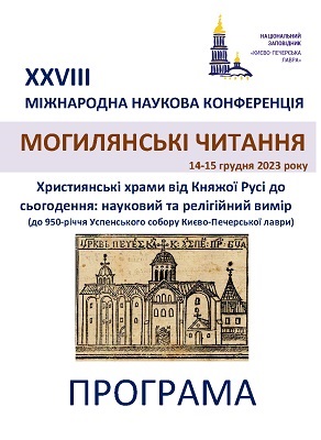 Протягом 14–15 грудня 2023 року в стінах Національного заповідника “Києво-Печерська лавра” проходила ХХVІІI Міжнародна наукова конференція “Могилянські читання”. Цьогорічну конференцію було приурочено 950-літтю головного храму Києво-Печерської лаври – Успенському собору. Тому її основною темою стали християнські храми і їхнє дослідження. На наш традиційний науковий форум було подано більше п’ятдесяти доповідей. Окрім киян, на ньому виступили науковці з Харкова, Львова, Луцька, Бережан та інших міст України. Враховуючи військовий стан, іногородні учасники конференції змушені були виступати в онлайн-режимі.