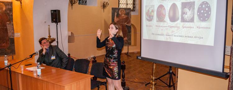 Preserve employees O. V. Topylko, O. H. Honcharenko and O. S. Balabanova showed the multimedia presentation of the “Museum Recreation for Children and Adults” interactive events, in particular, the thematic teaching excursion (with interactive elements) “Iconographic Scenes in Mural Painting of Kyiv-Pechersk Lavra Churches”, and the “Velykodnia Kraina in Lavra” cultural and educational project.