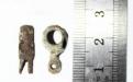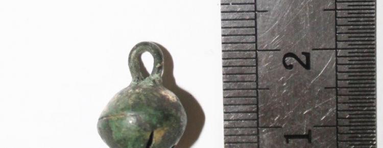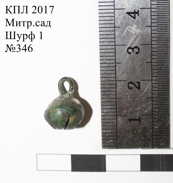 - кулеподібний бубонець-ґудзик із кольорового металу (мідь?) з лінійною проріззю;