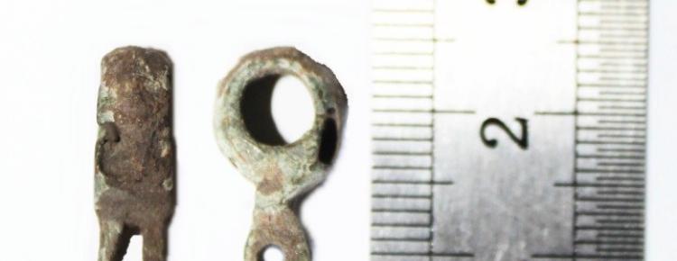 - частина пряжки з кольорового металу (бронза?) (2,7 х 2,5 см);