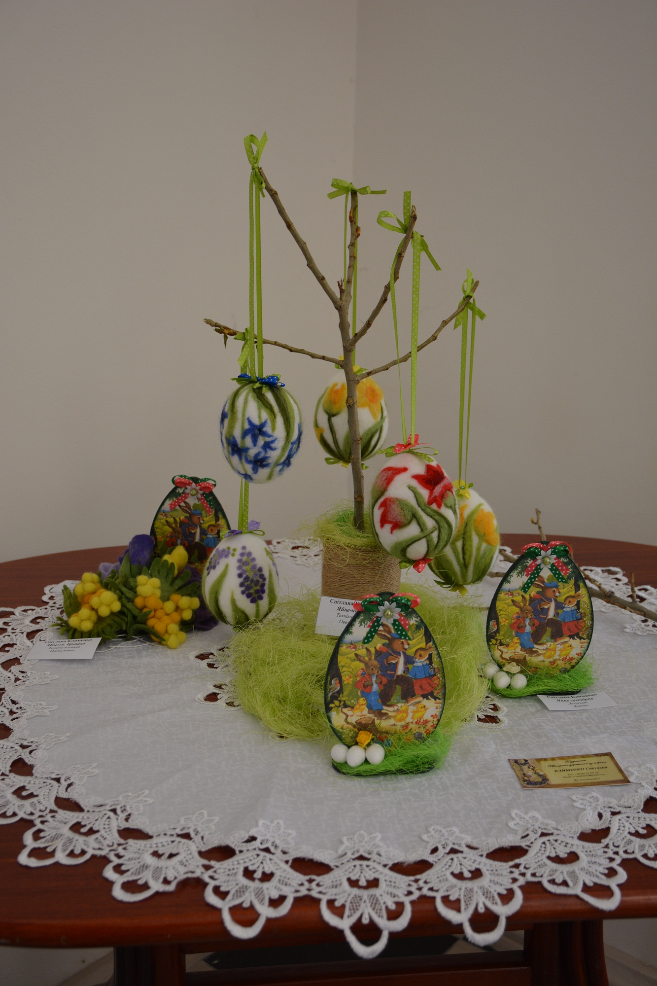 На виставці представлено тематичні витвори декоративно-прикладного мистецтва (ікони, Великоднє яйце, що виконані різними техніками, тематичні художні полотна, плетені кошики, дерев’яний та керамічний посуд, фігурки янголів тощо), що створюють особливий святковий настрій.