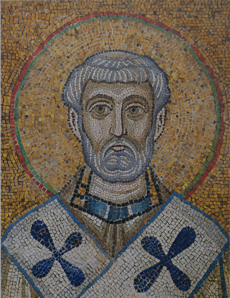 Іл. 2. Св. Климент Римський. Мозаїка головного вівтаря Софії Київської «Святительський чин», ліва половина. Деталь. Перша чверть ХІ ст.
