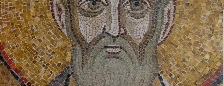 Іл. 1. Св. Єпіфаній Кіпрський. Мозаїка головного вівтаря Софії Київської «Святительський чин», ліва половина. Деталь. Перша чверть ХІ ст.