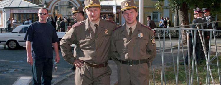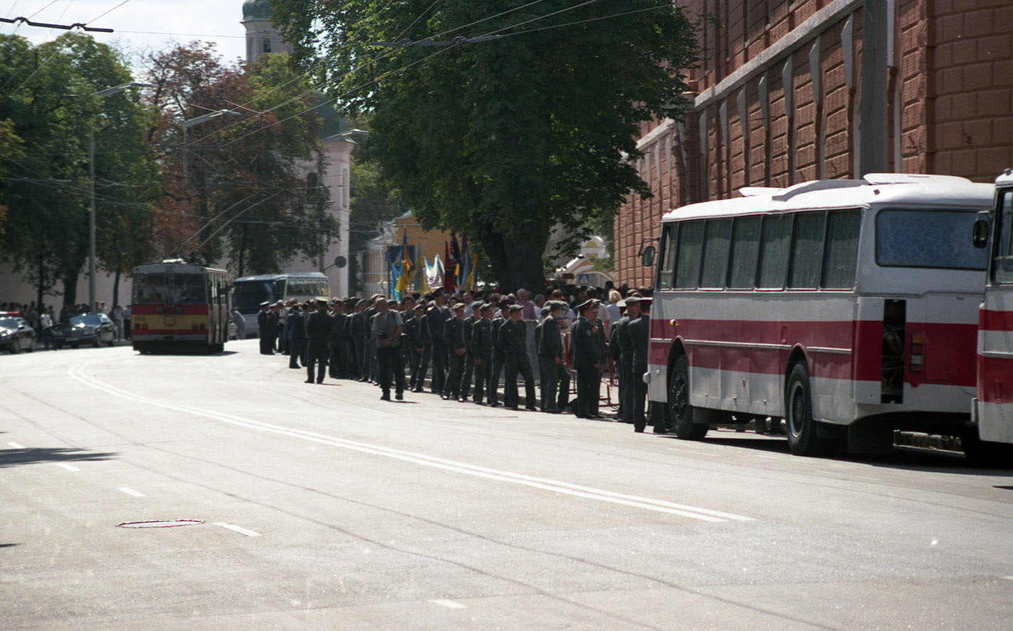 02-04. For reasons of the security of the ceremonial event's participants the law enforcement cordons were set near the Lavra. In front of the main entrance, buses were used as an additional obstacle for the protesters
