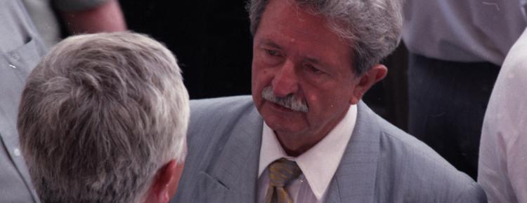 27. President of Ukraine Leonid Kuchma presents an icon to His Beatitude Metropolitan Volodymyr