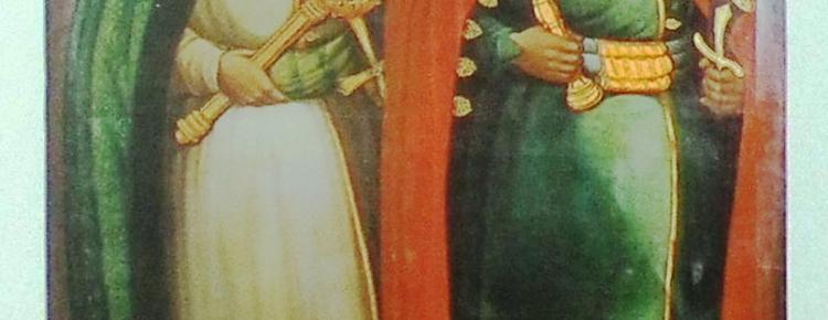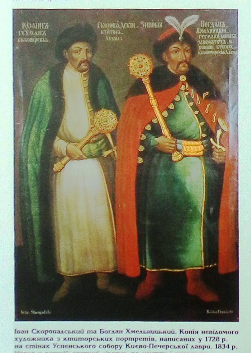 1. Іван Скоропадський і Богдан Хмельницький. Копія 1834 р. зі стінопису Успенського собору. Полотно, олія. 200,0×140,0 см. Львівський історичний музей