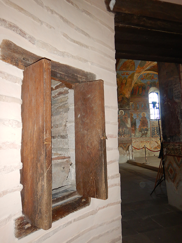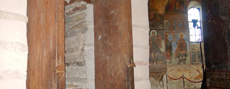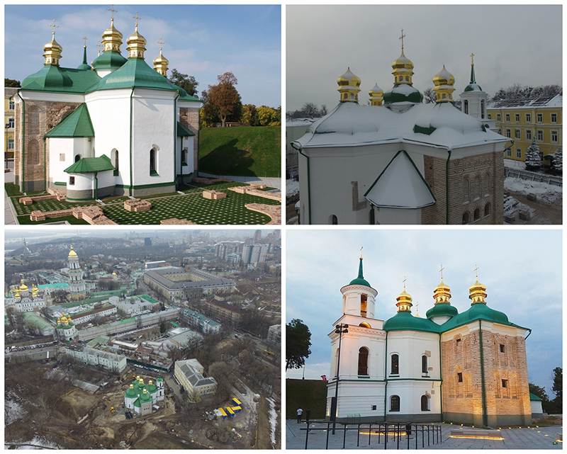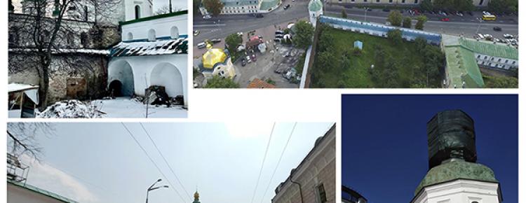 3. Також здійснено архітектурно-археологічні дослідження прихованої ніші у південному притворі церкви Спаса на Берестові. Під час огляду рами дверцят ніші зсередини виявилося, що верхню балку вмуровано в оригінальний розчин ХІ–ХІІ ст. Це підтвердило дані дендрохронологічного аналізу (Северин Сагайдак): зразок з верхньої балки перекриття дверцят зроблено з дубу, який ріс у діапазоні 960−1017 рр. Натурний огляд довів, що рівень підлоги ніші у княжий період був значно вищим за сучасний. Враховуючи це, а також факт існування арочного склепіння, найвірогіднішим є використання ніші для зберігання цінних речей, пов’язаних з повсякденним богослужбовим і господарським життям церковного кліру або архіву. Зразки розчинів взято на аналіз (іл. 3.1-3).