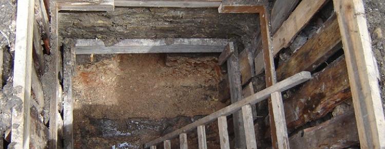 Іл. 5-6. Дослідження підмурків поблизу північно-західного контрфорсу (розкопки С. Тараненка, 2021 р.)